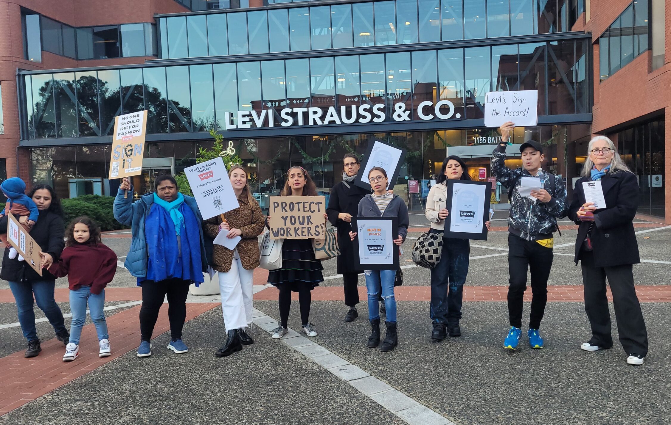 Levi’s has been the target of intense campaigning by garment workers unions in Bangladesh and Pakistan, as well as labor rights advocates around the globe for years. The WSR Network has played a leading role in U.S.-based campaigning, bringing union leaders and activists to the Levi’s headquarters with demands that they sign the Accord. In addition to the WSR Network, the U.S. campaign on Levi’s has been spearheaded by the Clean Clothes Campaign, Eko, Remake, and Workers United.